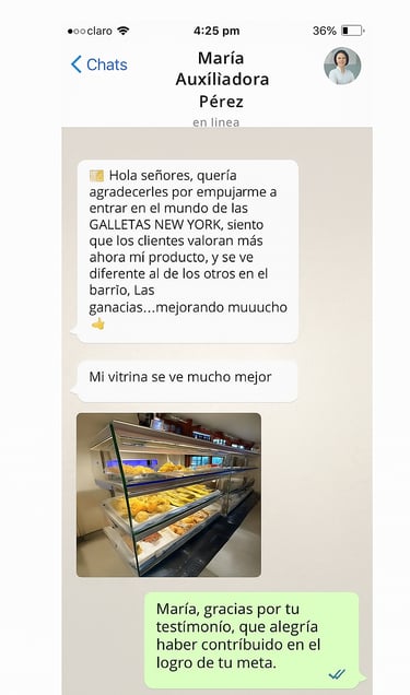 “Siempre me ha gustado cocinar, pero nunca pude convertirlo en un negocio. Después de comprar Los Secretos de las Galletas New York, comencé a vender en el vecindario y la gente quedó encantada. Las galletas prácticamente se venden solas, ¡solo con publicar las fotos ya recibo pedidos!”