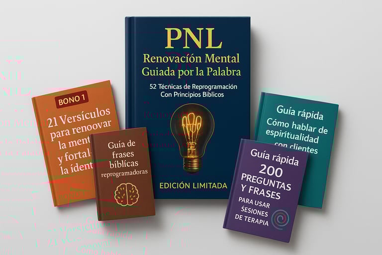 Guía principal que integra la Programación Neurolingüística con los principios bíblicos. Incluye 52 técnicas prácticas para resignificar experiencias, romper creencias limitantes, crear anclas espirituales y afirmar la identidad en Dios. Un manual único que une neurociencia y fe cristiana para transformar vidas con propósito.